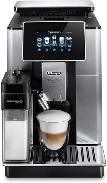 ماكينة تحضير قهوة إسبريسو وكابتشينو أوتوماتيكية بالكامل بريمادونا سول، ECAM610.75.mb من ديلونجي، أسود وفضي