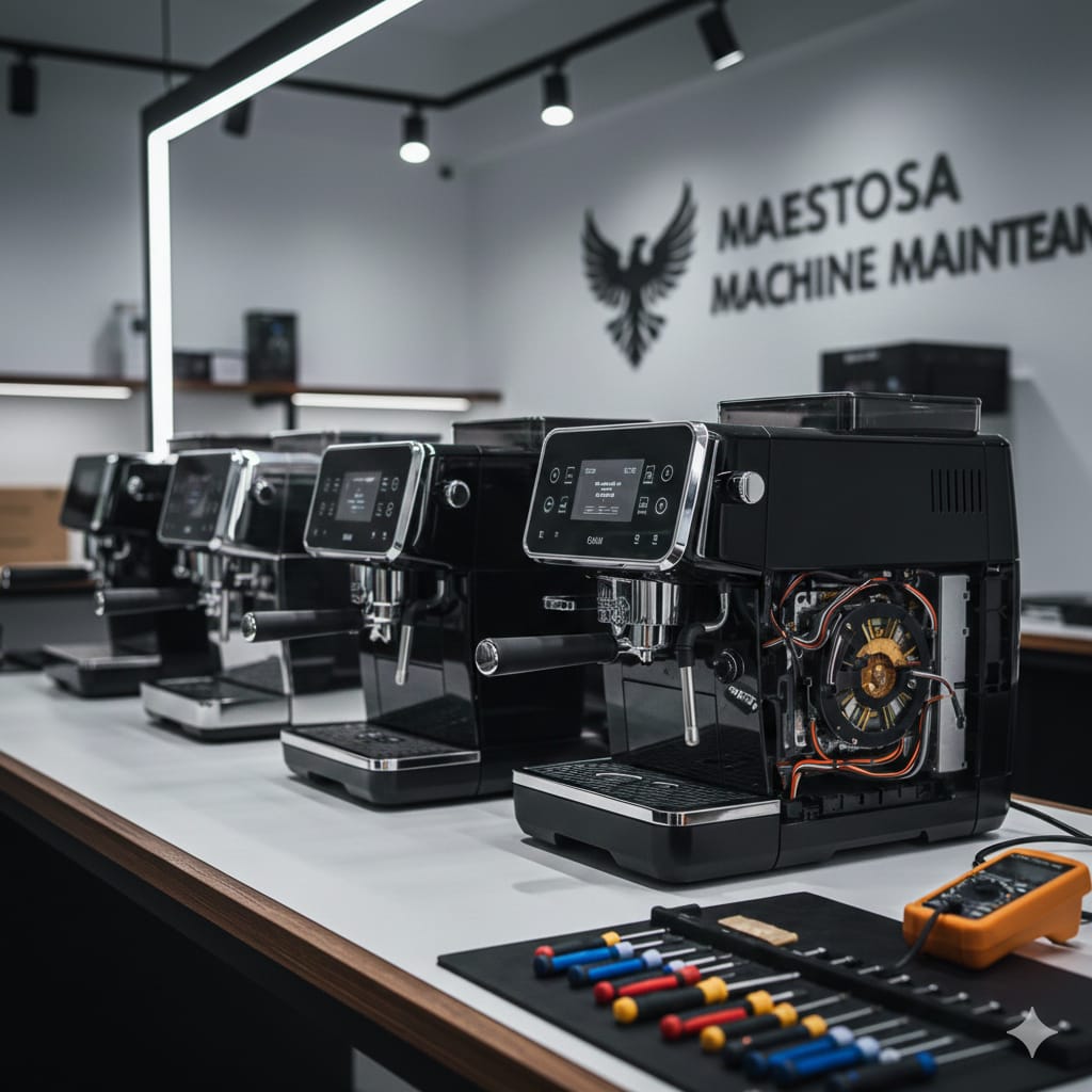 في مايستوزا بنوفر خدمة صيانة احترافية لماكينات القهوة المنزلية والاحترافية مع فحص دقيق للأعطال واستبدال قطع الغيار الأصلية أو المتوافقة.